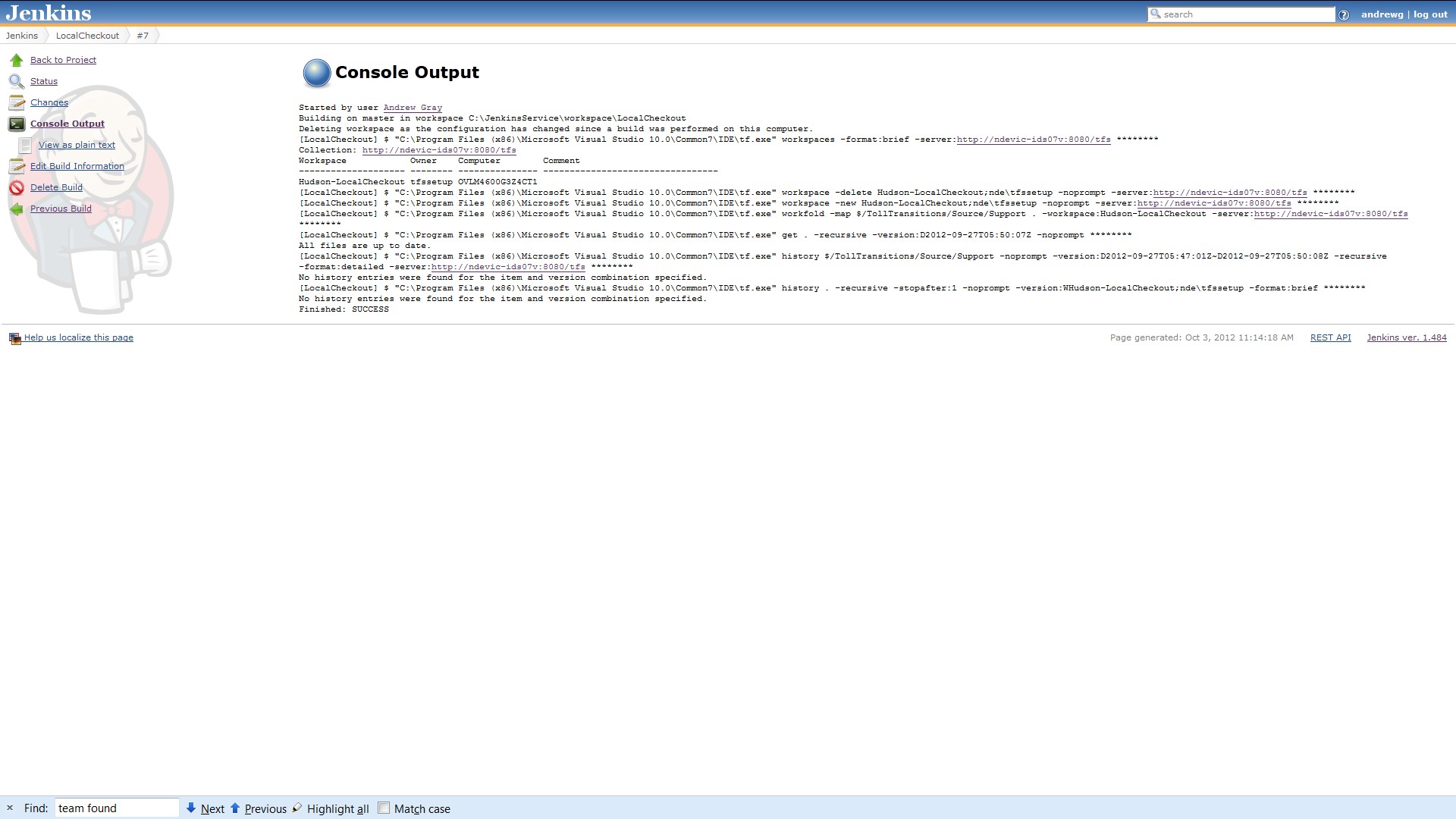 [LocalCheckout] $ "C:\Program Files (x86)\Microsoft Visual Studio 10.0\Common7\IDE\tf.exe" workspace -delete Hudson-LocalCheckout;nde\tfssetup -noprompt -server:http://ndevic-ids07v:8080/tfs ********
