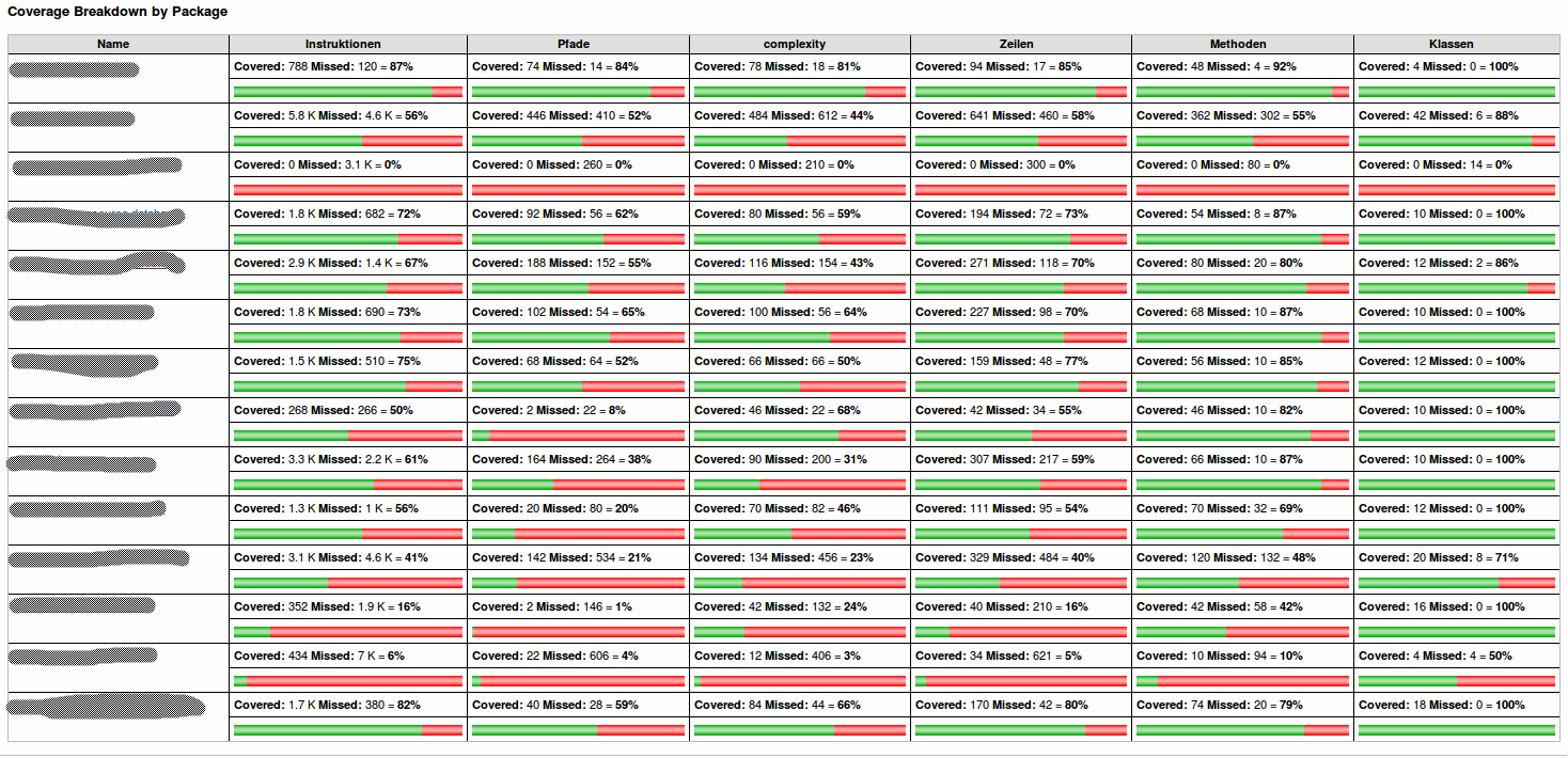 The length (length red + length green) of the Red/green bar should be equal in length for all bars. The red/green ratio should reflect the percentage of the coverage.