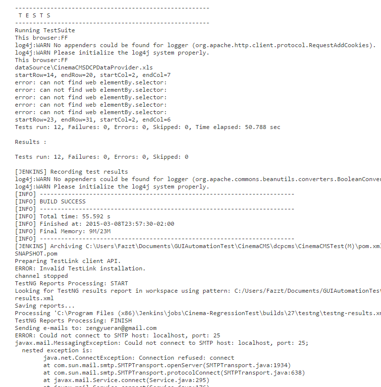 When I tried to run a selenium test with Jenkins, the test finished with results: