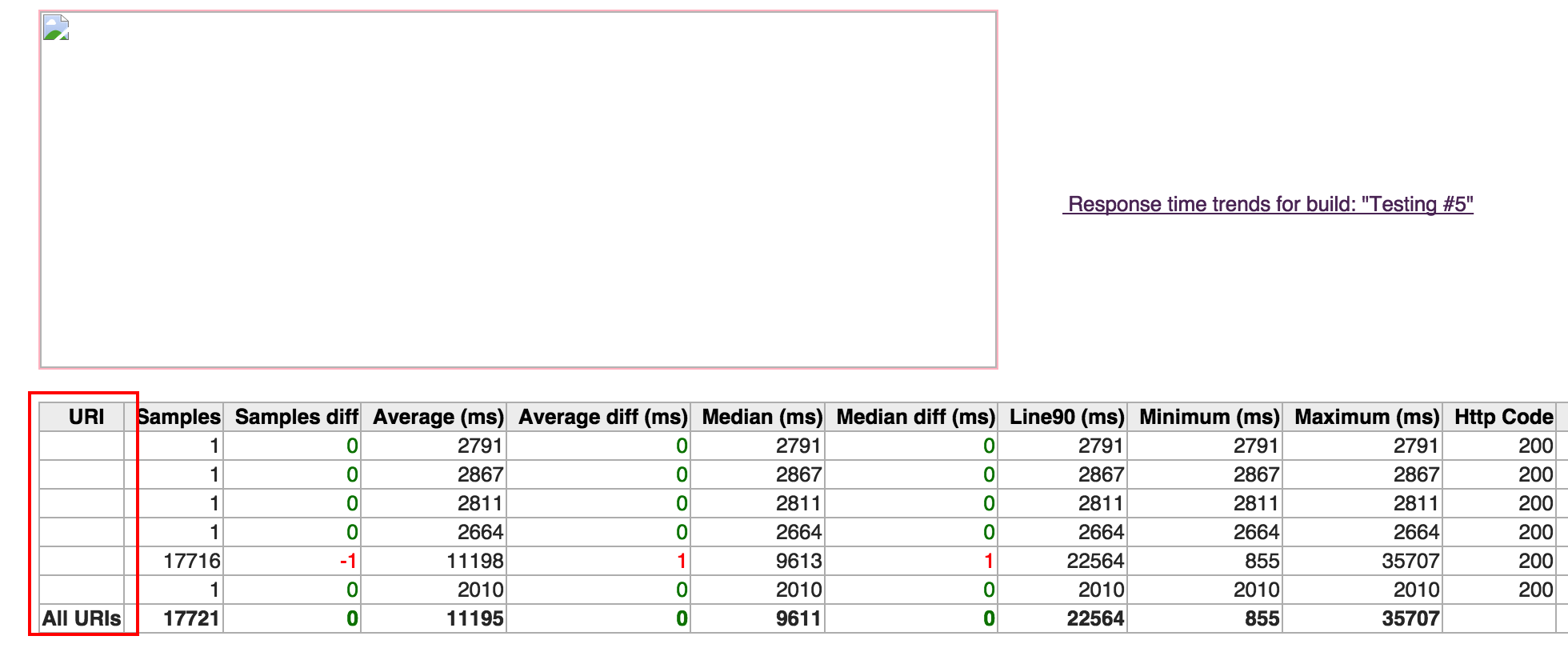 Jenkins should show application "URL's" in "URI" column of "Performance" report. But it not showing. Also "Through put" values are showing as 0 (Zero).