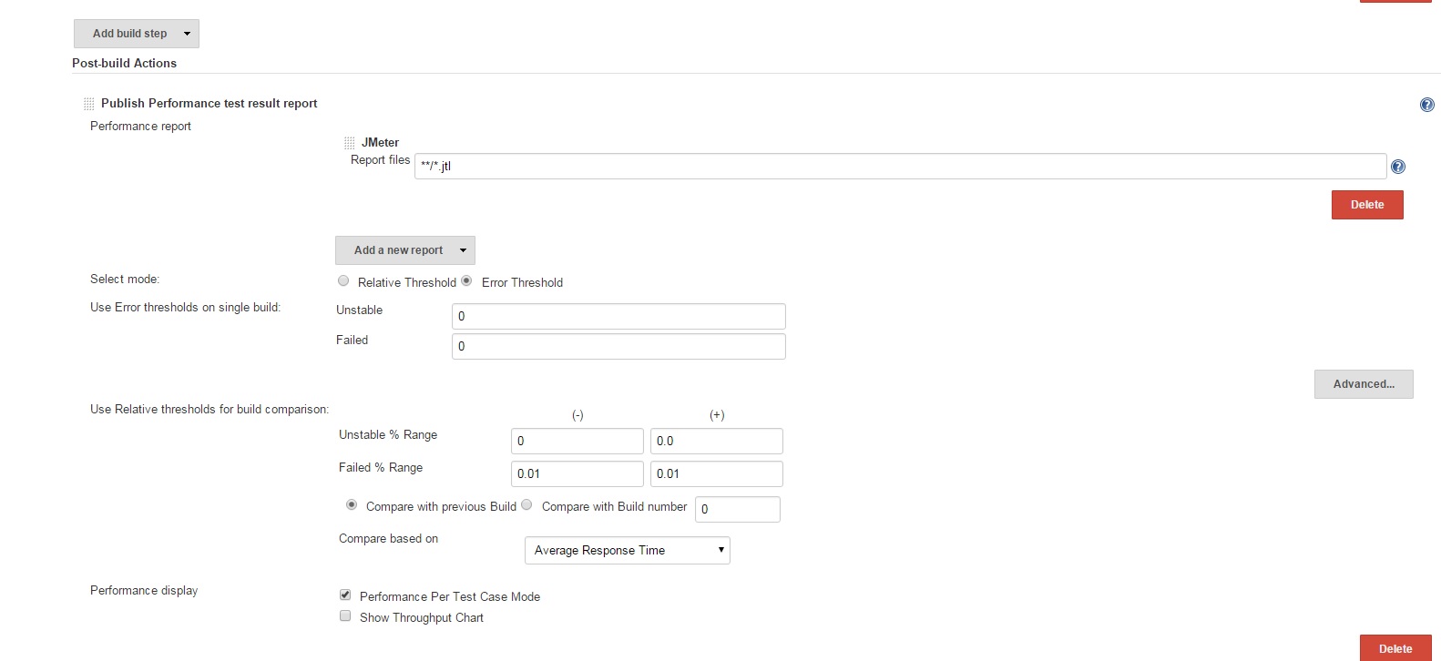 Performance plugin not failing build when use relative thresholds in jmeter project