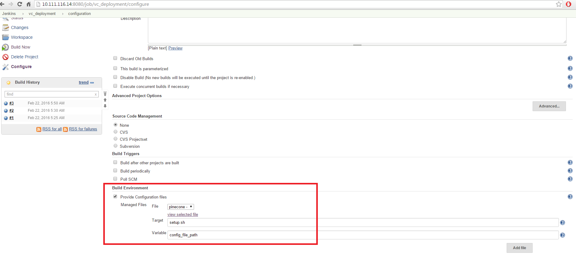 When I create a pipeline, there's no config file settings. Actually the whole (Build Environment) section is missing.