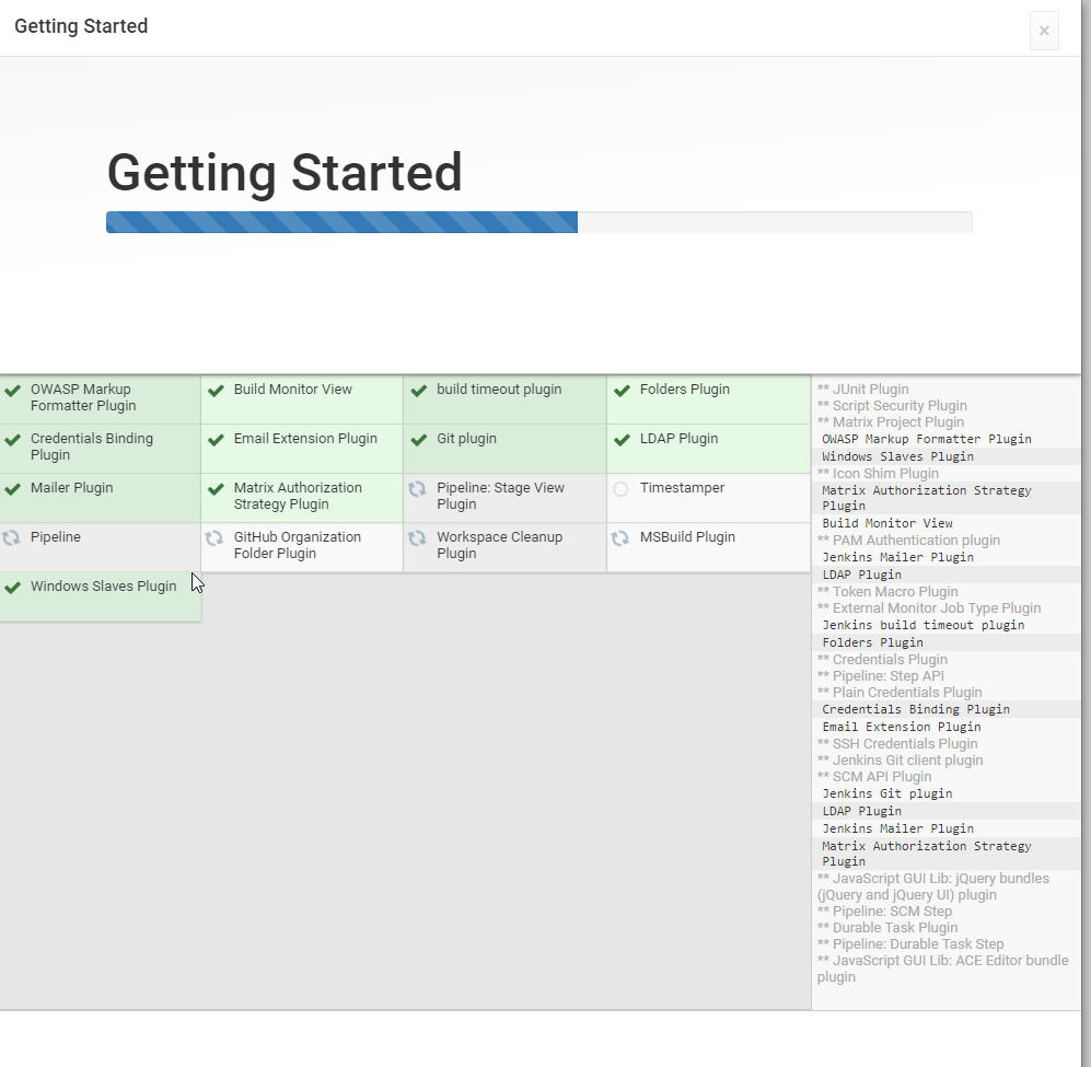During the install phase of the initial setup wizard, danielbeck says there should be some boxes in the gray area of the screenshot. He asked me to file this issue. There are no errors in the JS console in the browser.