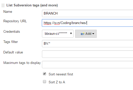 If I committed into https://svn/Coding/branches/V0.1_ then the branch version _V0.1 was stored in the parameter variable BRANCH and could be accessed in a build step (e.g batch command %BRANCH%).