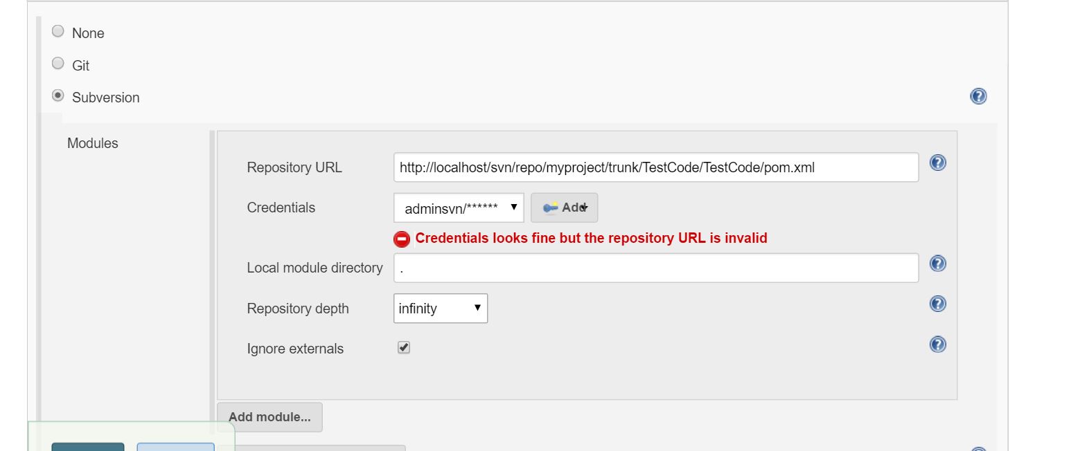 Using Subversion 2.6 and latest Jenkins. Getting this error while configuring a new job. Thank you in advance.
