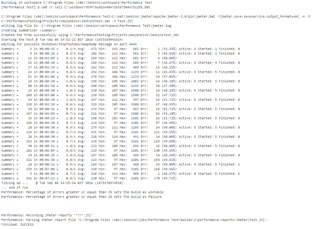 The console output displays errors as the test runs, the performance report displays errors but yet the job still gets marked as successful. I'm using jenkins 2.73, the 1.14 version of the performance plugin and Jmeter v3.0