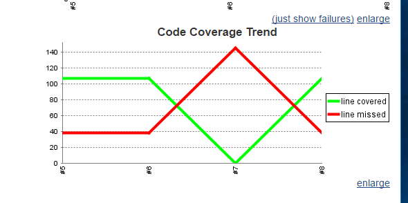 When performing normal CI builds, the job always shows the information about test results and the test trend chart.