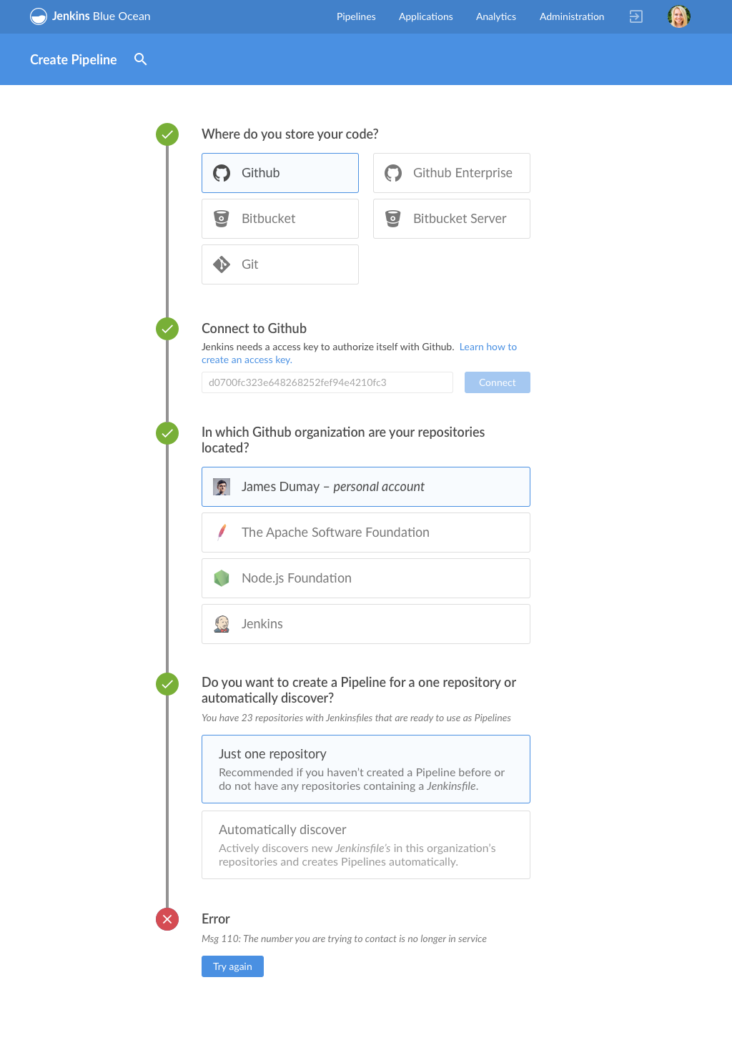 When the pipeline creation process finishes, it may end up in a state that is a failure.