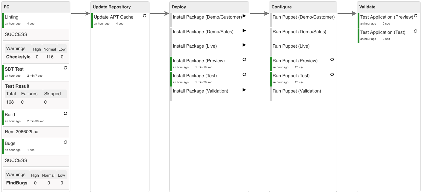 I had to do it that way, because if I remove (see screenshot) "Install Package (Preview)" from the downstream job of "Update APT Cache" and instead add it as a downstream job of "Test Application (Test)" (which is exactly what I want - I want the application to first install in my "Test" environment, be tested successfully there and THEN install into "Preview"), then I get a "circular dependency" from Jenkins/Deploy pipeline plugin.