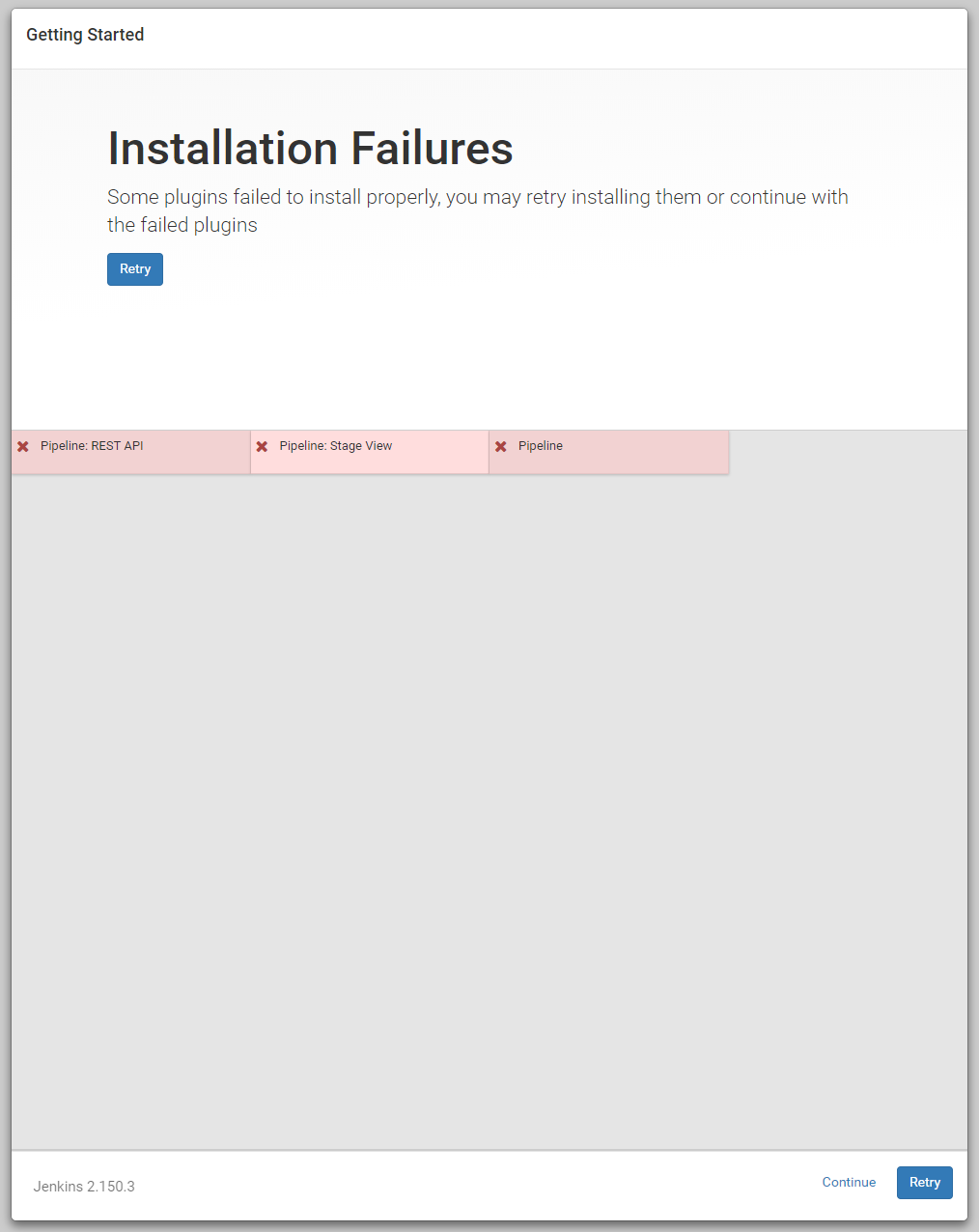 The result can be seen on the screenshot (i've tried it many times, with latest, lts and 2.150.3).
