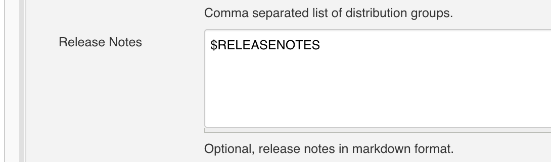 3. Release notes sent via the API to AppCenter
