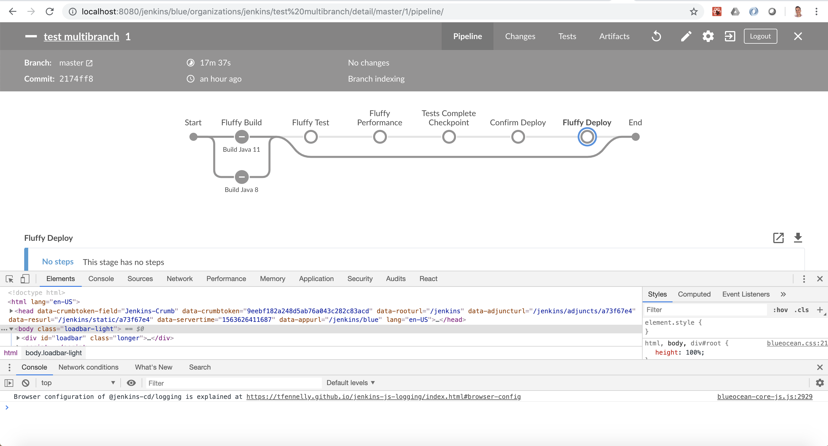That is a nice result, but that only works with some version of Blue Ocean older than 1.10.2. It does not work with Blue Ocean versions 1.10.2 through 1.17.0.