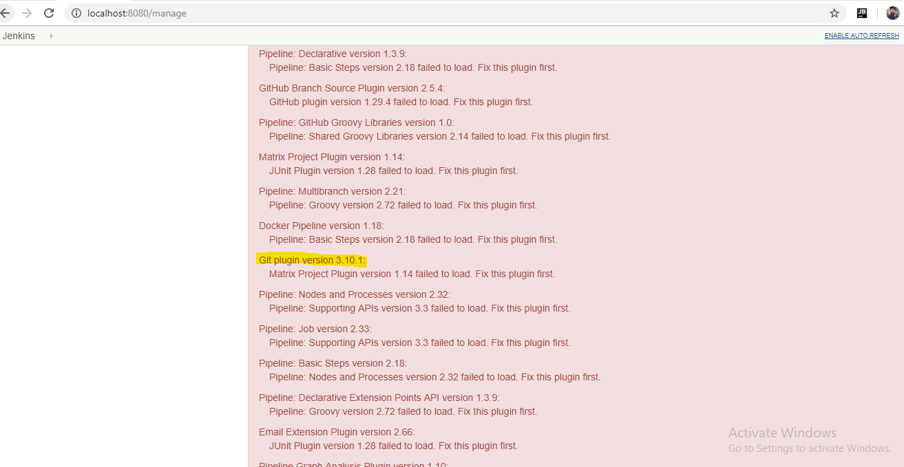 GitHub plugin version 1.29.4Jenkins Git plugin version 3.10.1 failed to load. Fix this plugin first.