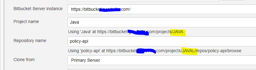 When we chose the Java project, policy-api appears twice in the repository name list and regardless of which we select the repo url is always the JAVAL one.
