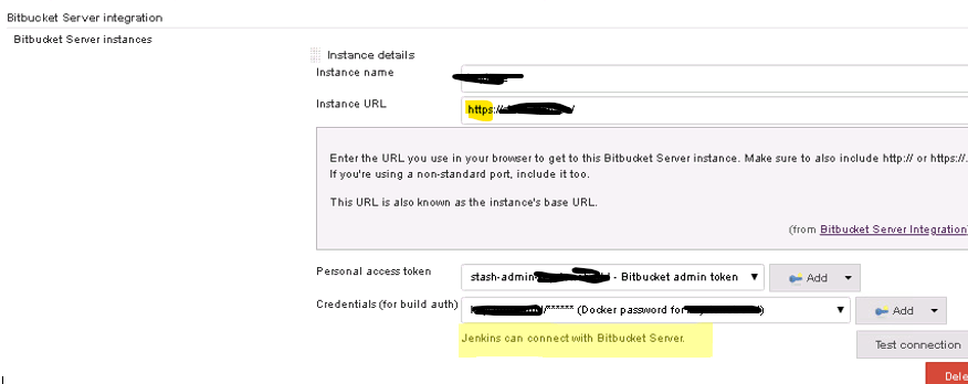 From Jenkins System Config, was able to verify the Bitbucket server connection works.