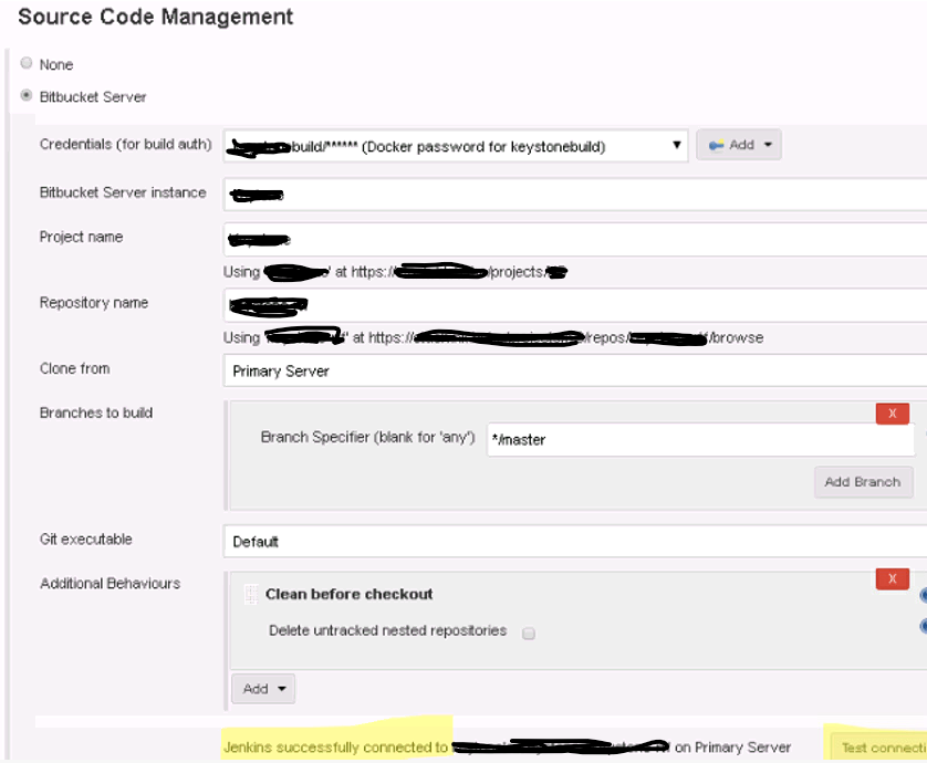 From Jenkins freestyle Project Configuration, was able to verify the Bitbucket connection.