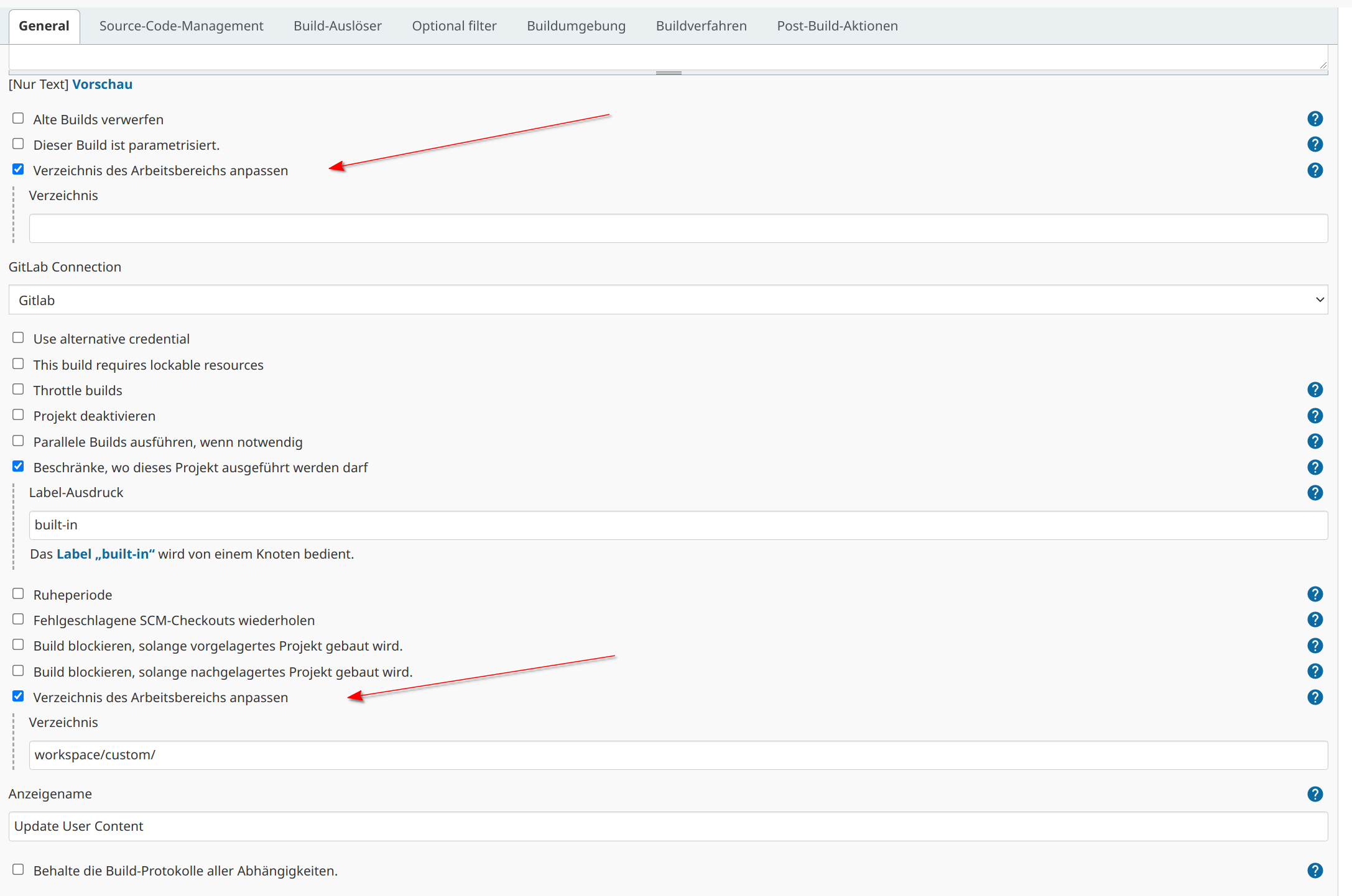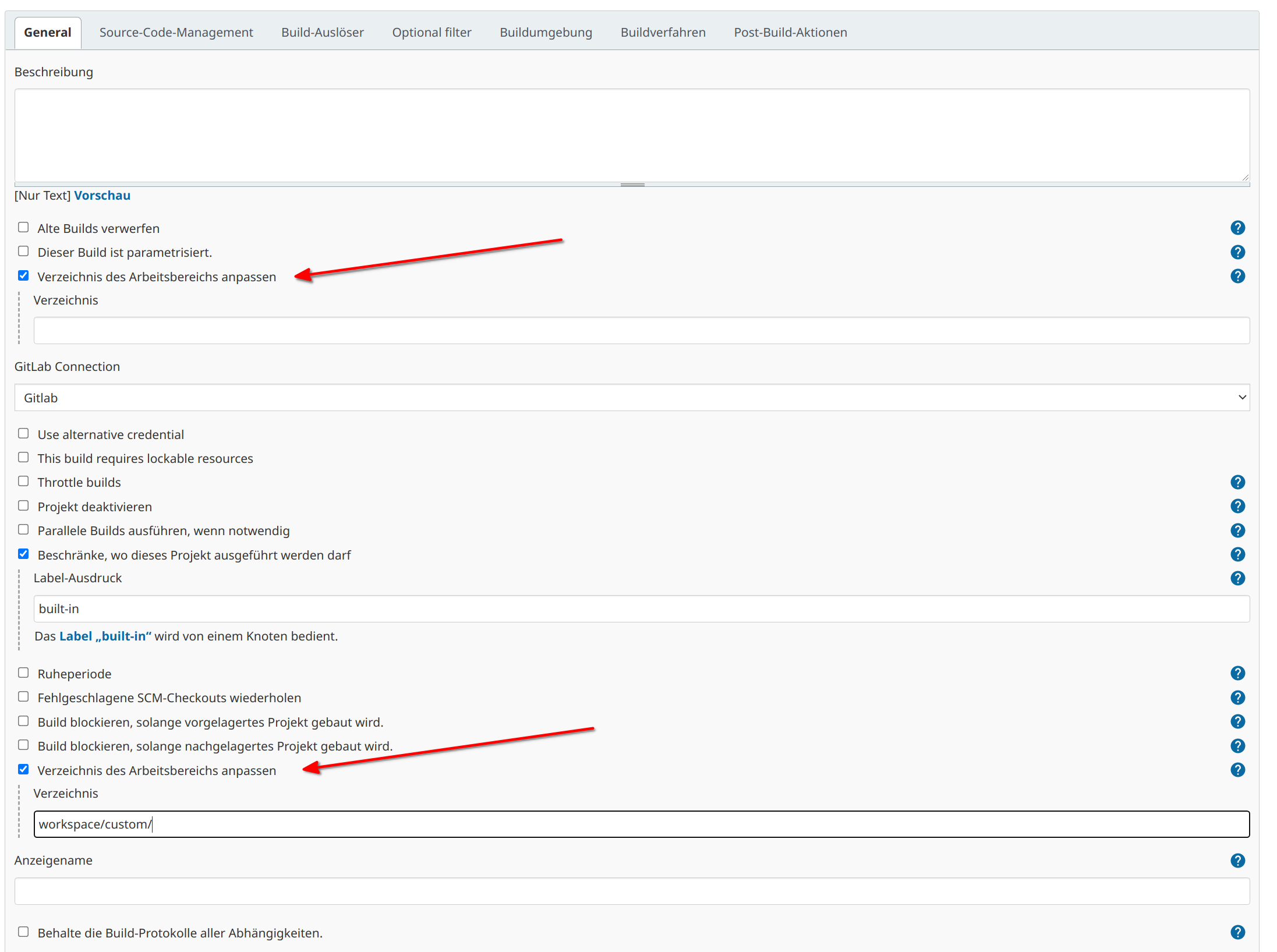 <customWorkspace>myWorksapce/</customWorkspace>