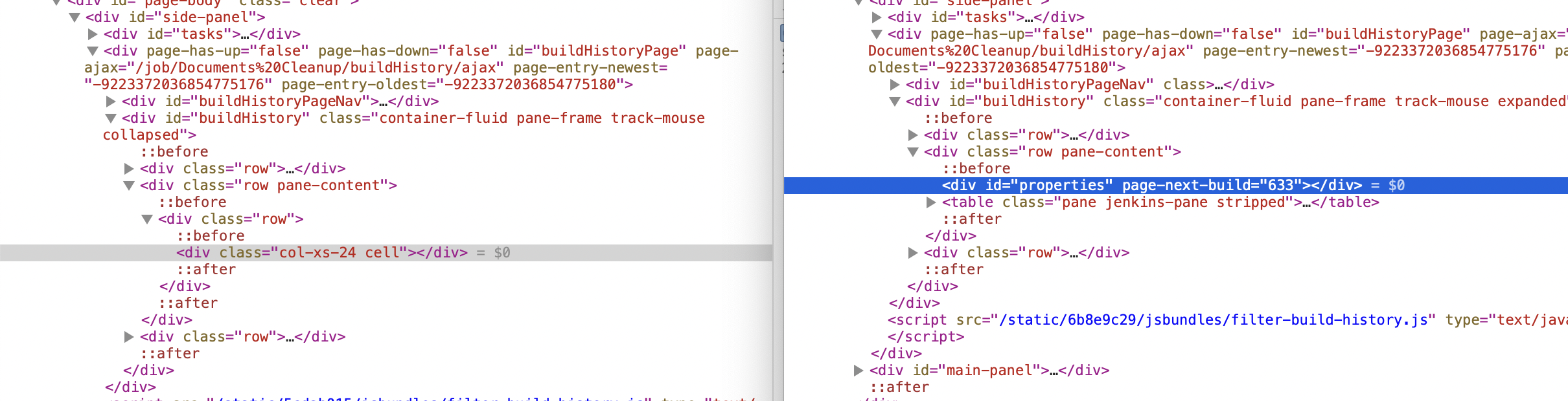 div element with page-next-build attribute and with id: "properties", is missing and that causes javascript error, ajax build history (buildHistory/ajax) works when I open URL directly.