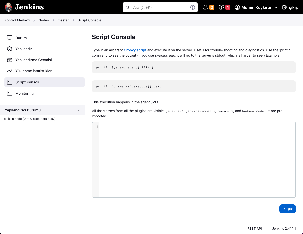 There is a Turkish translation error on the Script Console page.