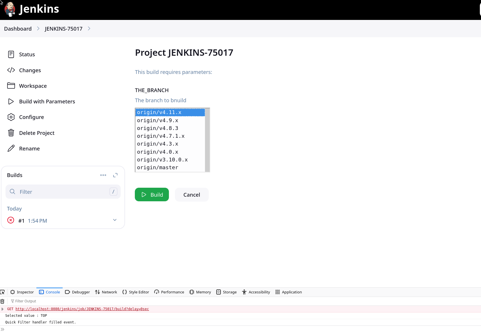 When setting the parameters to do a deploy, the branch selection dropdown is not responding to keyboard inputs, but only mouse for choosing the branch. Works fine in Chrome.