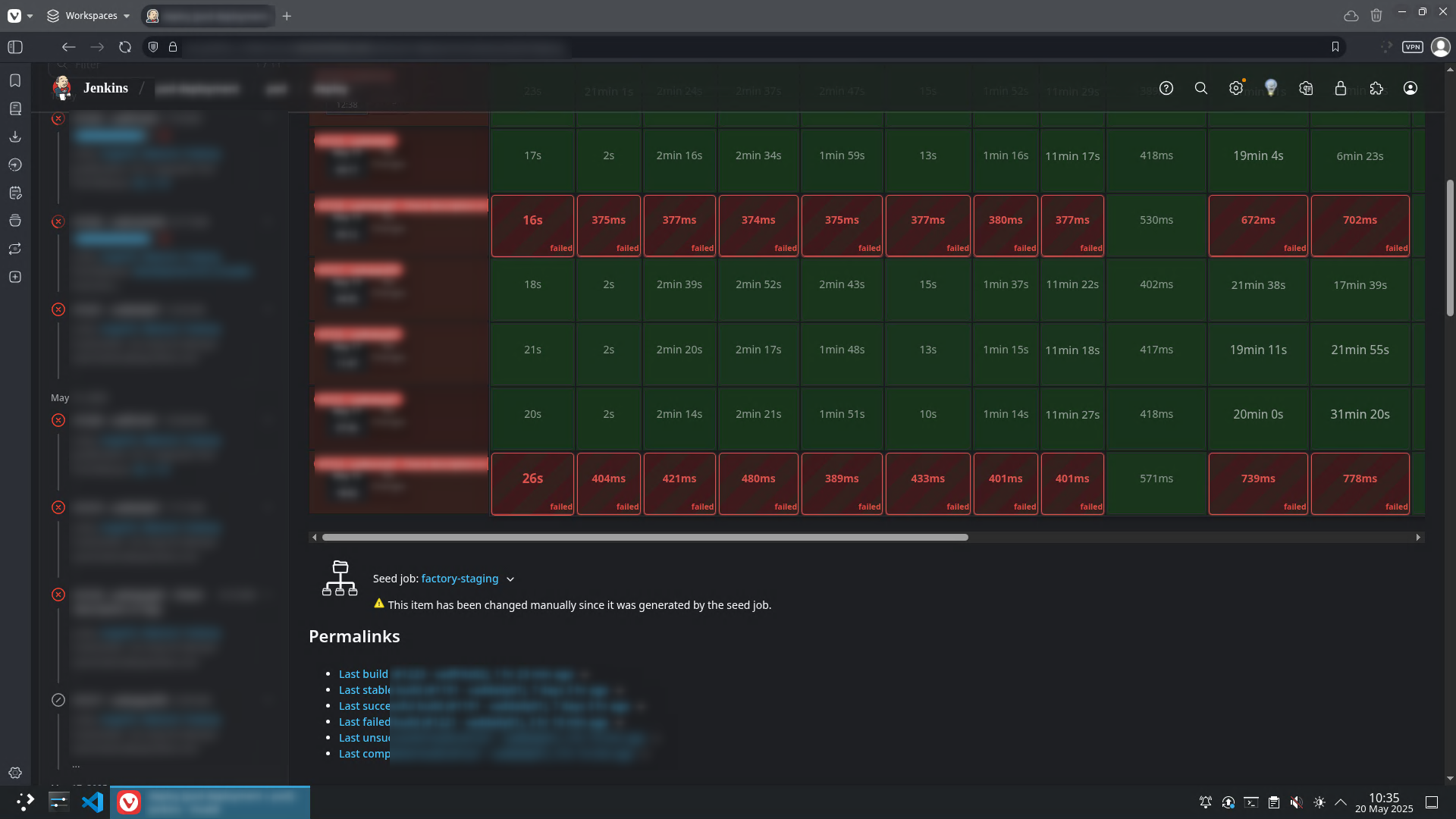 In the past the scrollbar was always visible, no a user is required to scroll down first to the end of the table, then scroll right, then scroll up again for reviewing the later jobs of the most recent pipelines. This is somewhat annoying. Request: Provide a method which allows the reach late pipeline jobs of recent pipelines in a more convenient fashion.