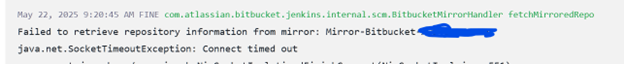 3. Jenkins logs clearly show that only one mirror is unreachable. Other mirrors are reachable, but do not contain our repo, still not ok, as we have a very similar error message, e.g. "Failed to retrieve ...."
