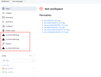 When a build fails before the Warnings tool executes (after a prior successful build), multiple warning tabs appear.