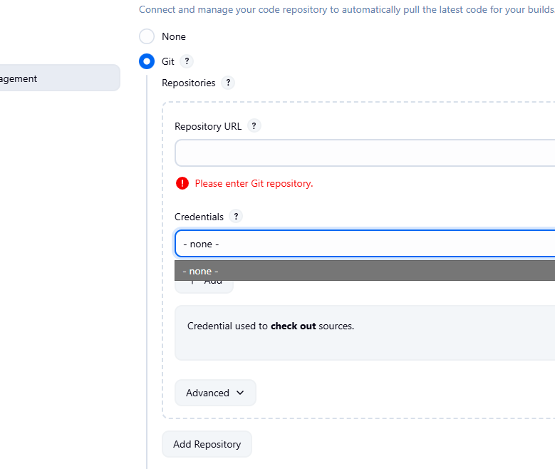 When using a freestyle project i cant select any of the credentials i have configured in the credential manager. I pipeline jobs this is not an issue