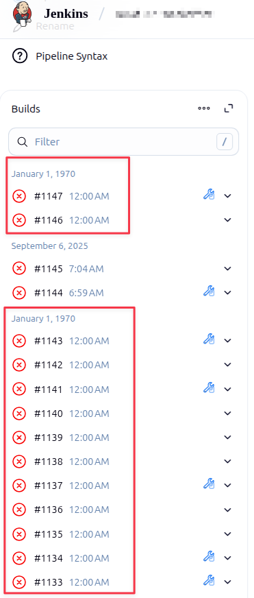 Losing Jobs info after some time (Jenkins 2.516.2), all jobs become (Jan 1, 1970, 12:00:00 AM)