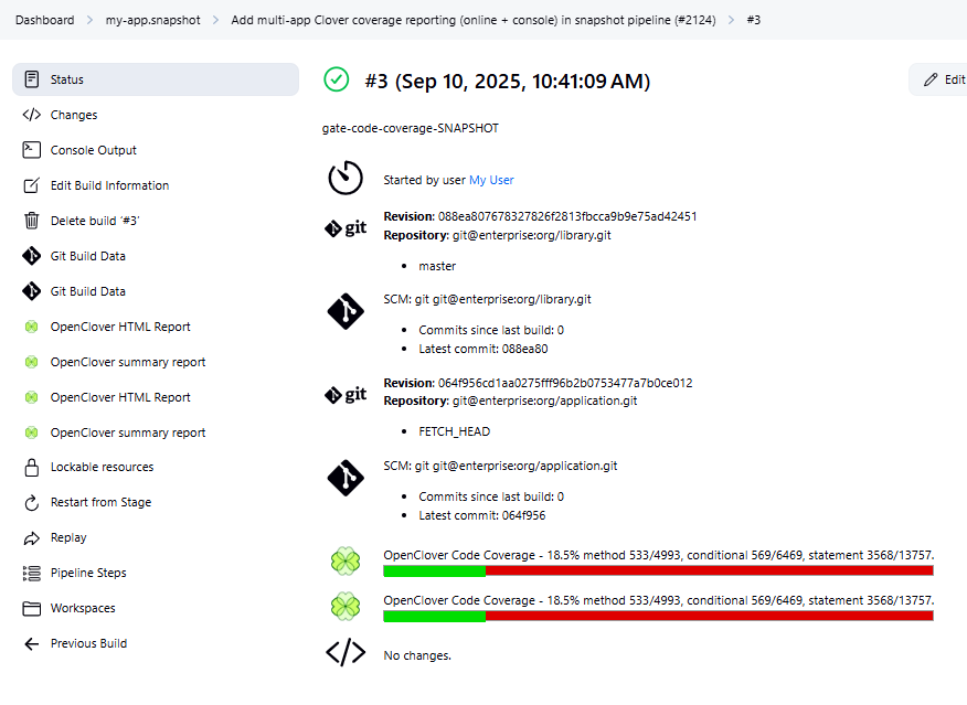 stage('Report') { steps { script { def apps = ['app1', 'app2'] apps.each { appName -> def reportDir = "coverage/apps/${appName}" def cloverFilePath = "${reportDir}/clover.xml" echo "[COVERAGE] Publishing Clover report for ${appName} (${cloverFilePath})" clover( cloverReportDir: reportDir, cloverReportFileName: 'clover.xml', healthyTarget: [methodCoverage: 70, conditionalCoverage: 80, statementCoverage: 80], unhealthyTarget: [methodCoverage: 0, conditionalCoverage: 0, statementCoverage: 0], failingTarget: [methodCoverage: 0, conditionalCoverage: 0, statementCoverage: 0] ) } } } }