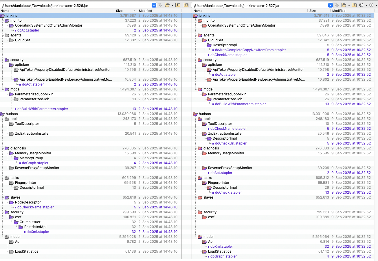 Comparing recent jenkins-core.jar files, https://github.com/jenkinsci/stapler/blob/a95221851a23a5405656df6063e080a9b42ec4b2/core/src/main/java/org/kohsuke/stapler/jsr269/QueryParameterAnnotationProcessor.java does not seem to reliably generate .stapler files. See attached comparison of "orphan" files (present on one side, missing on the other).