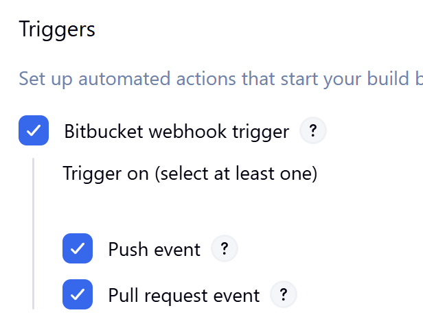 We set up the "Bitbucket webhook trigger" with all boxes checked: