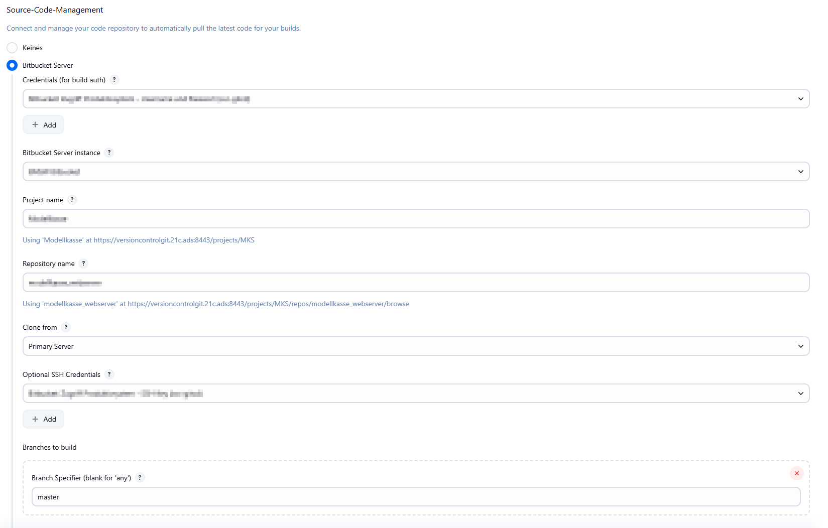 We use a jenkins pipeline (saved on Bitbucket server as Jenkinsfile) and want builds to get triggered by multiple things: