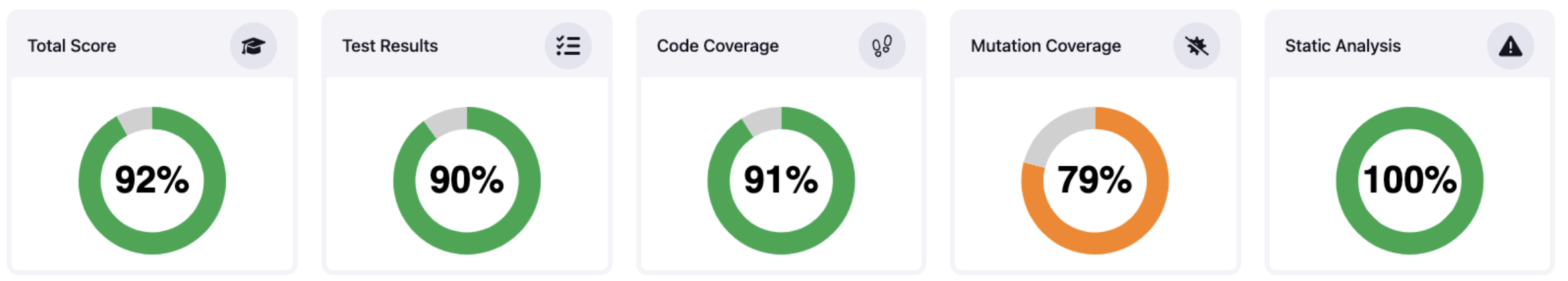 The new view should show small portlets that visualize one metric of the project. For percentages it makes sense to use a gauge, see example.
