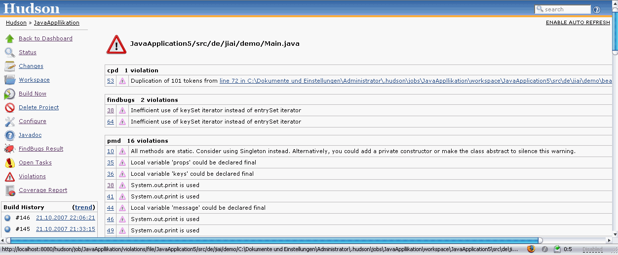The cpd part of the violations plugin (Rev. 0.5.2) uses a wrong link target on